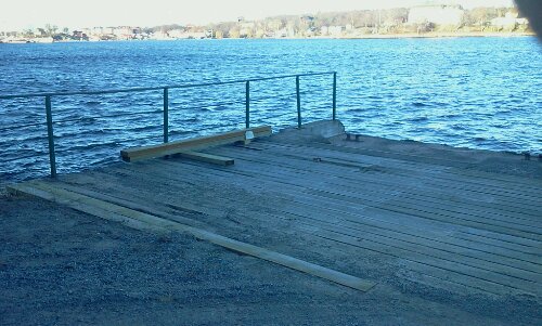 SjöVägens tidigare brygga vid snickeriet nedanför Danvikshem repareras. Gamla plankor byts ut.