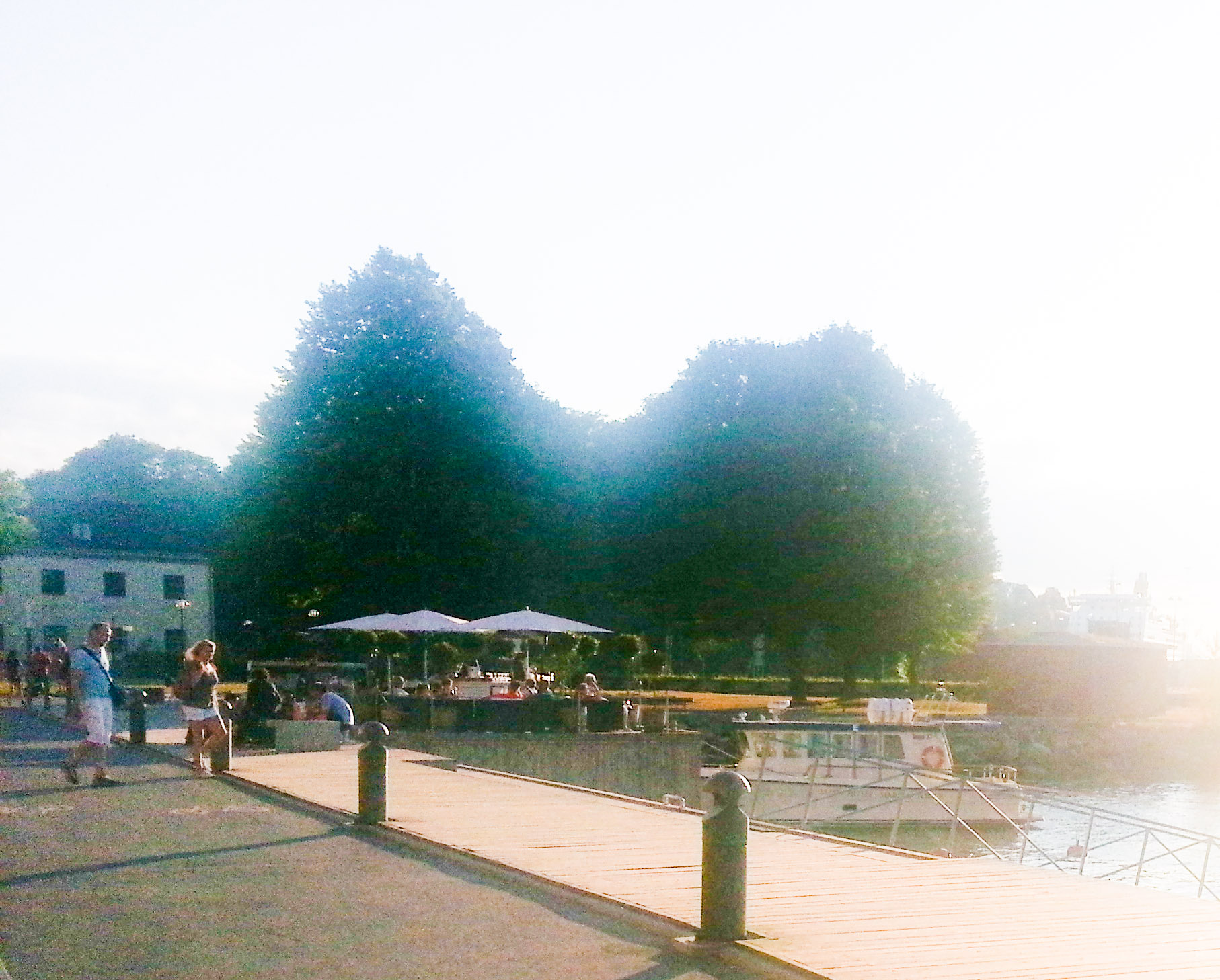 Öl- och vinbaren ligger på Sjökvarnskajens trädäck med utsikt mot Fåfängan, Saltsjön och Waldemarsudde.