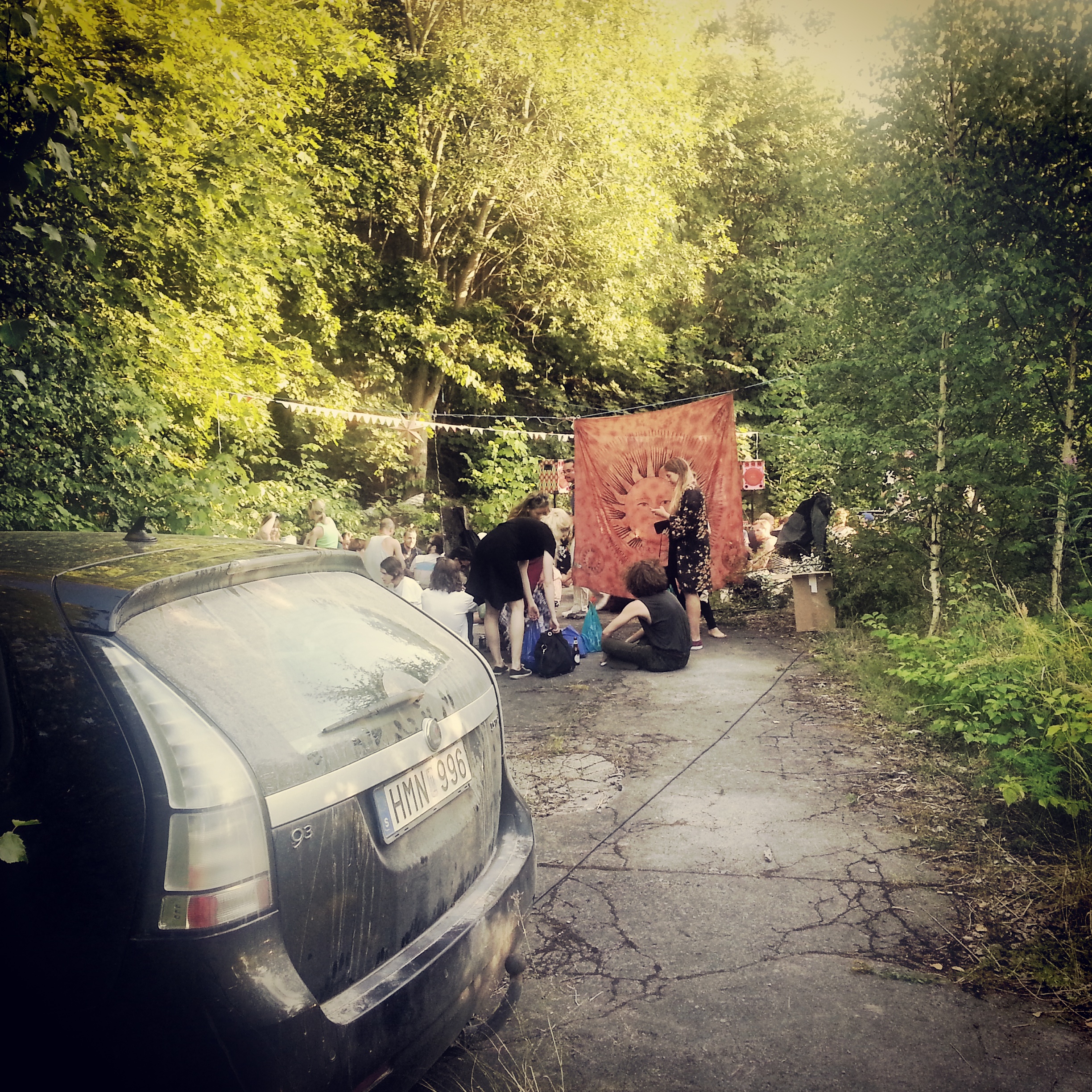 Det hördes allt från latinska till psychedeliska rytmer. Partyvepor hängde i träden. Ungdomar satt på skogsmarken, snackade och drack.