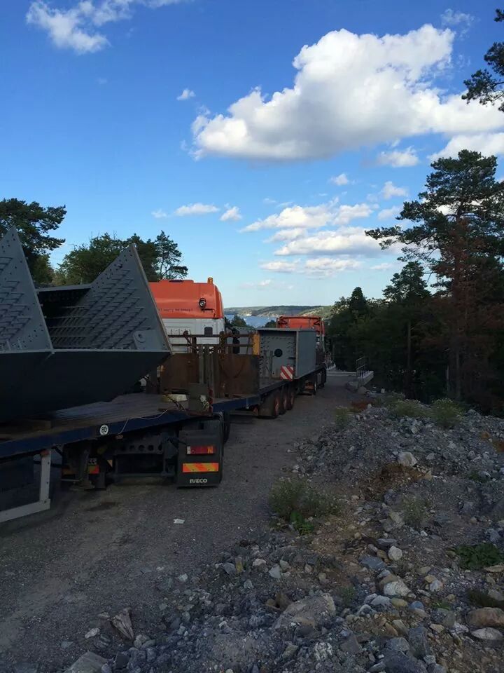 Redan denna vecka har delar av bron mellan Kvarnholmen och Ryssbergen anlänt.