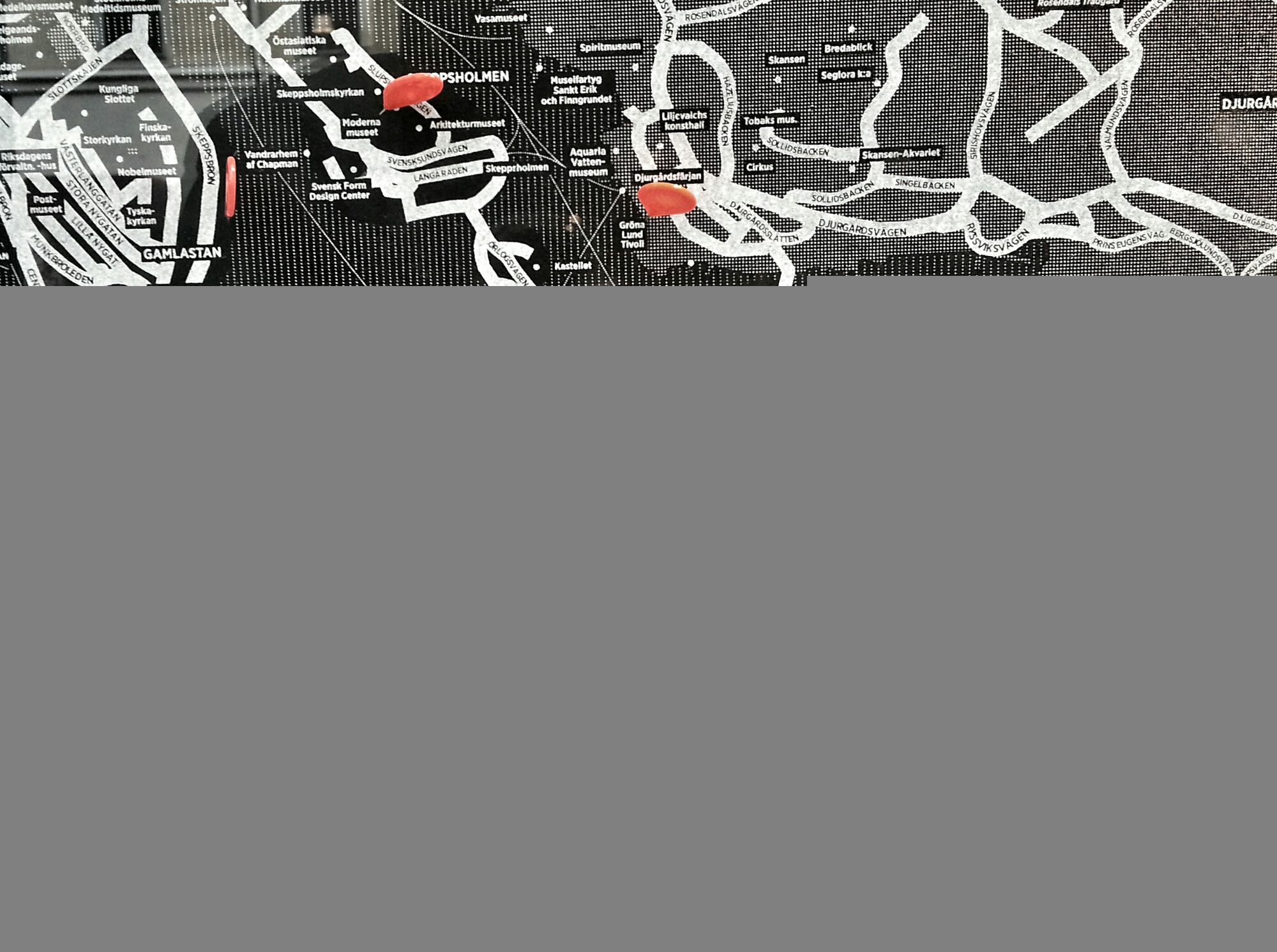 Den är 77 x 90 cm stor med nålar för att markera olika platser. Här finns deras webbshop