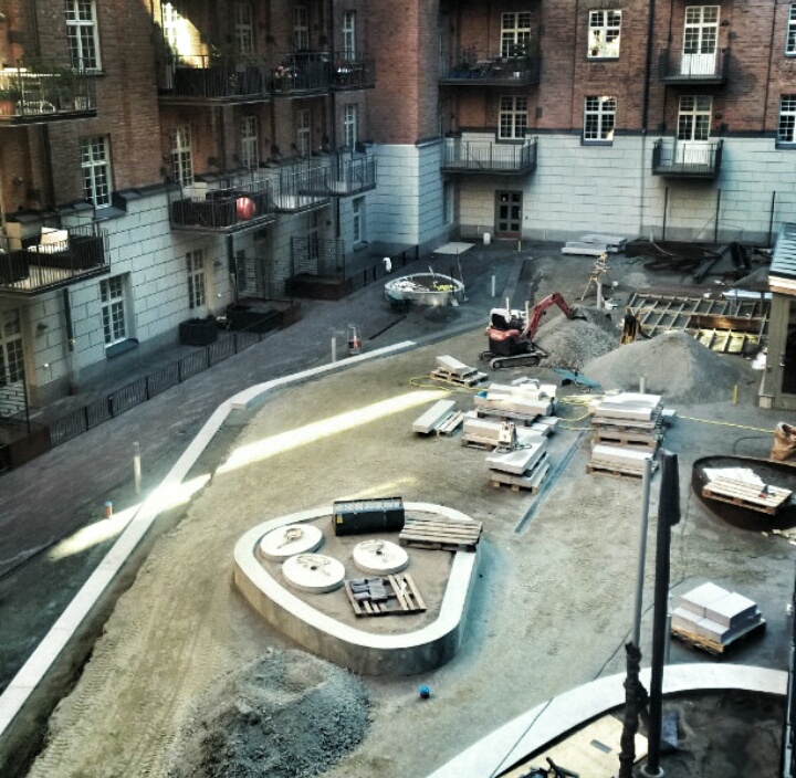 Funkia Arkitekters koncept Mjölnarens kvarglömda korn börjar ta form mellan Qvarnen Tre Kronor och berget bakom.