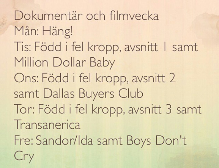 Dessutom blir det Million Dollar Baby, Dallas Buyers Club, Boys Don’t Cry mm.