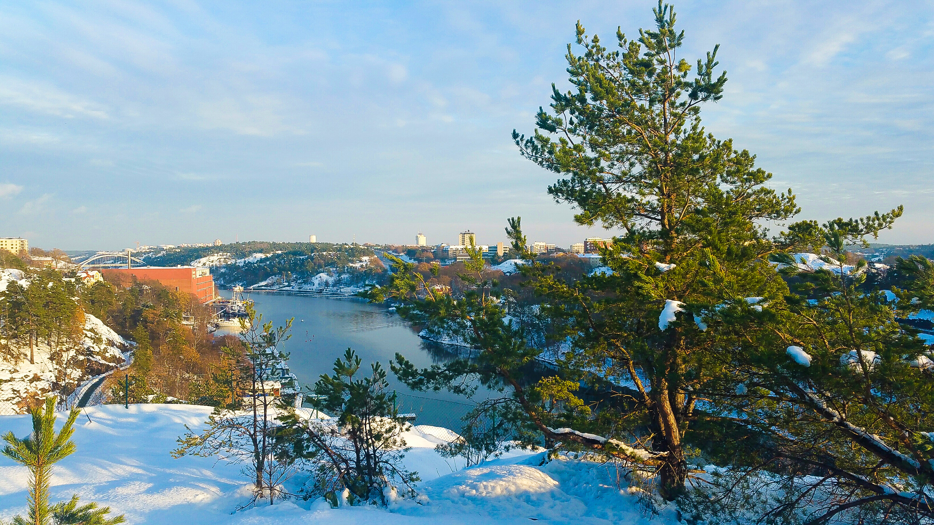 Grannar verkar även på vintern ta sig till utsikten över Kvarnholmsbron, Gäddviken, Svindersviken och Alphyddan. Så det är inte så svårt att gå i deras spår i snön.