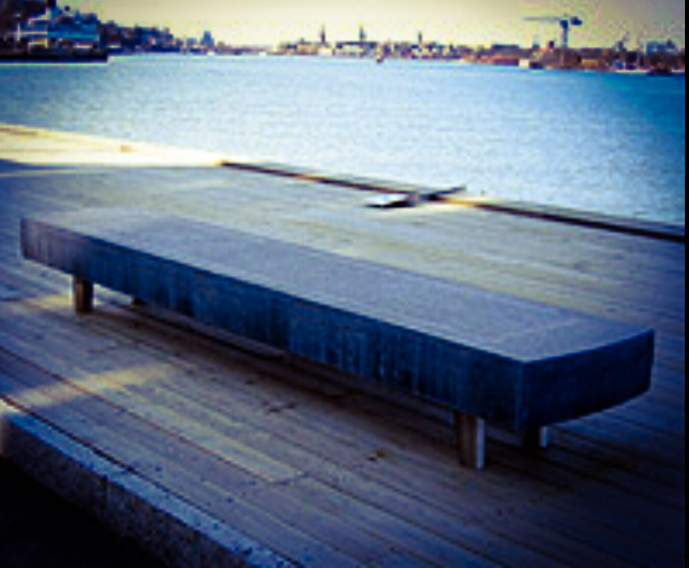 Just nu renoveras kajen vid Danvikstrand i Nacka men annars bjuder den på fyra lysande svarta, specialtillverkade terrazzobänkar.