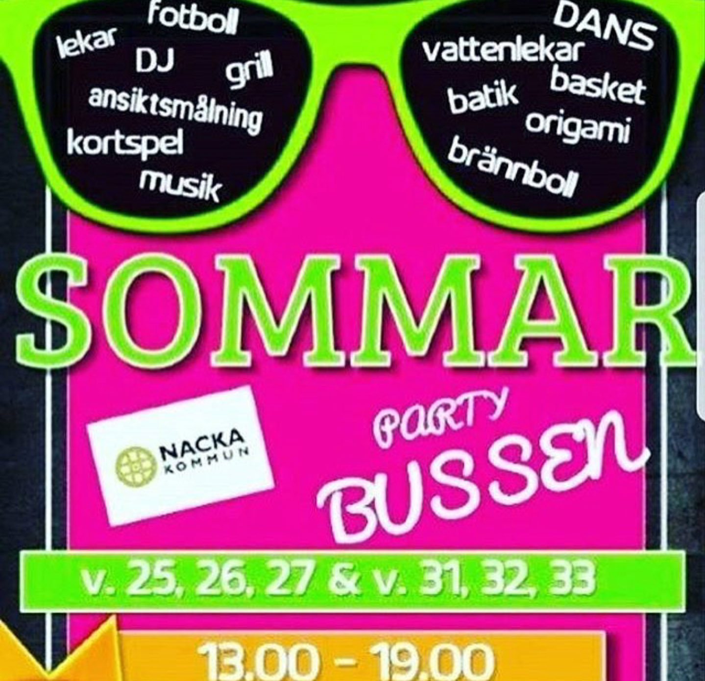 Sommar Party-bussen som bjuder ungdomar och barn på en massa roliga aktiviteter under sommaren kommer 19 juni till Henriksdalsberget.