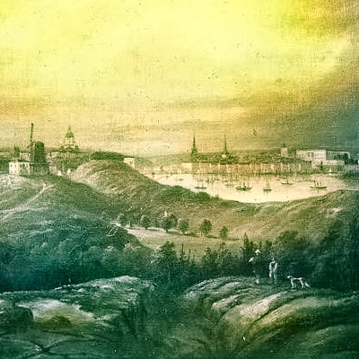 En okänd konstnär målade 1880 en vy över då obebyggda Danviken där vi idag har Danviksklippan, Saltsjöqvarn och Danvikshem.