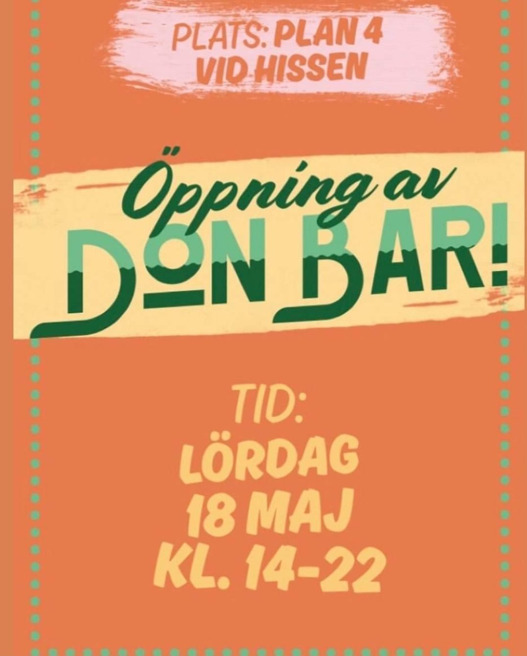 Lördag, 18 maj klockan 14:00 – 22:00 öppnar sommarstället Don Bar på Kvarnholmen, Nacka med mat och dryck.