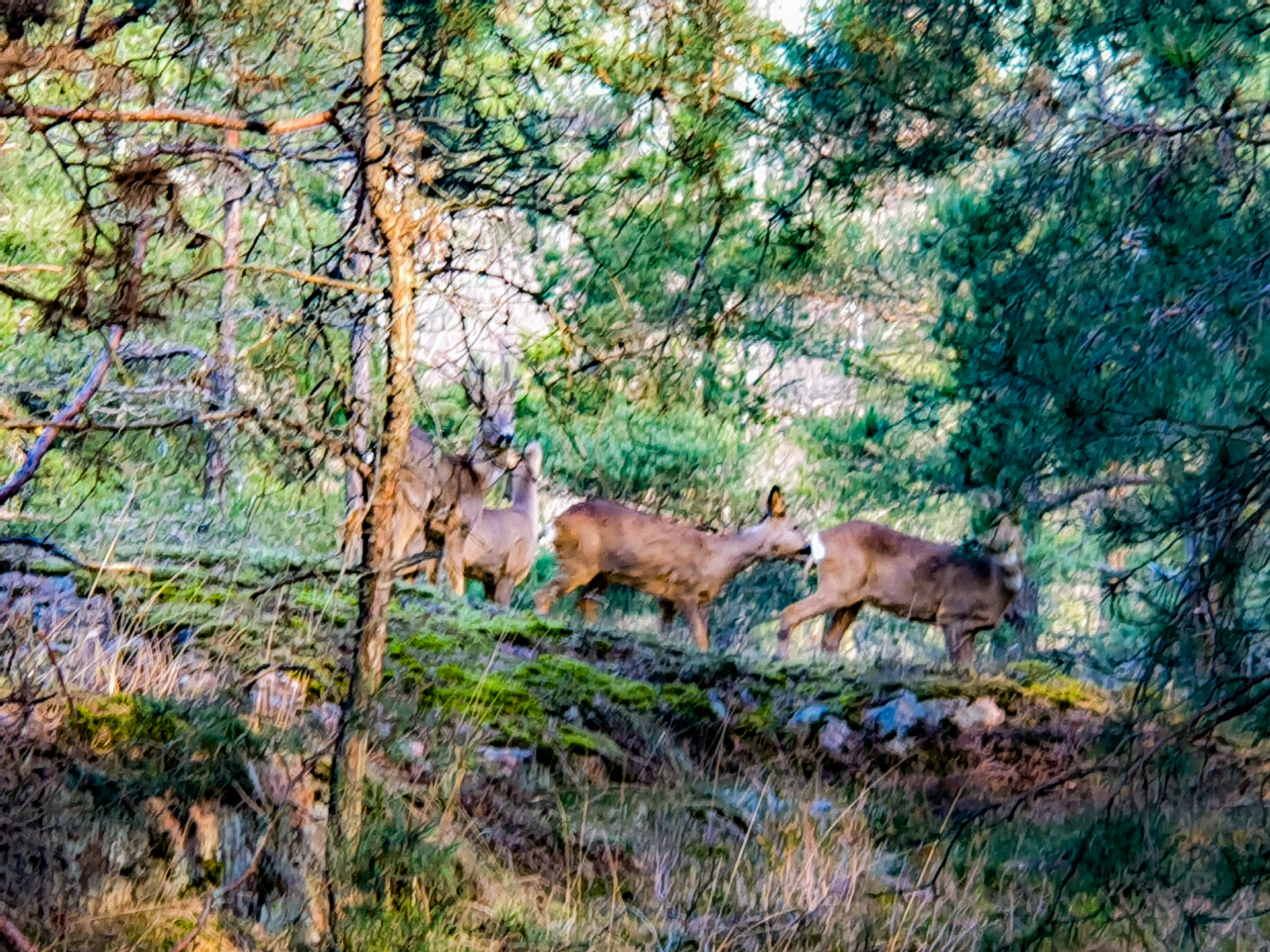 Där dyker det upp många djur framför kameran: Ekorrar, rådjur, hackspett, mes, spindlar, nyckelpigor…