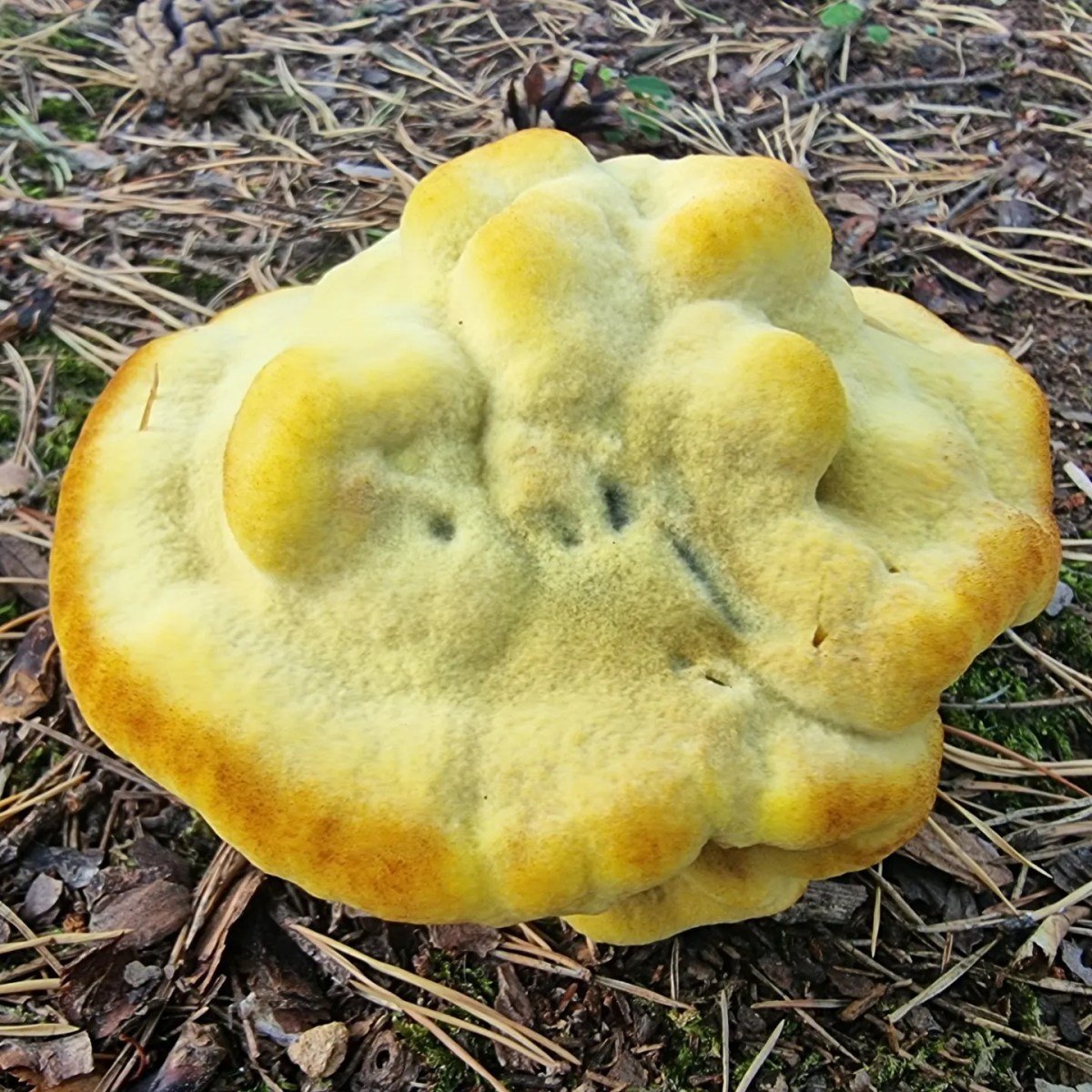 Nu har jag i flera år sett att svampen grovticka växer år efter år vid en talls fot i Trolldalen.